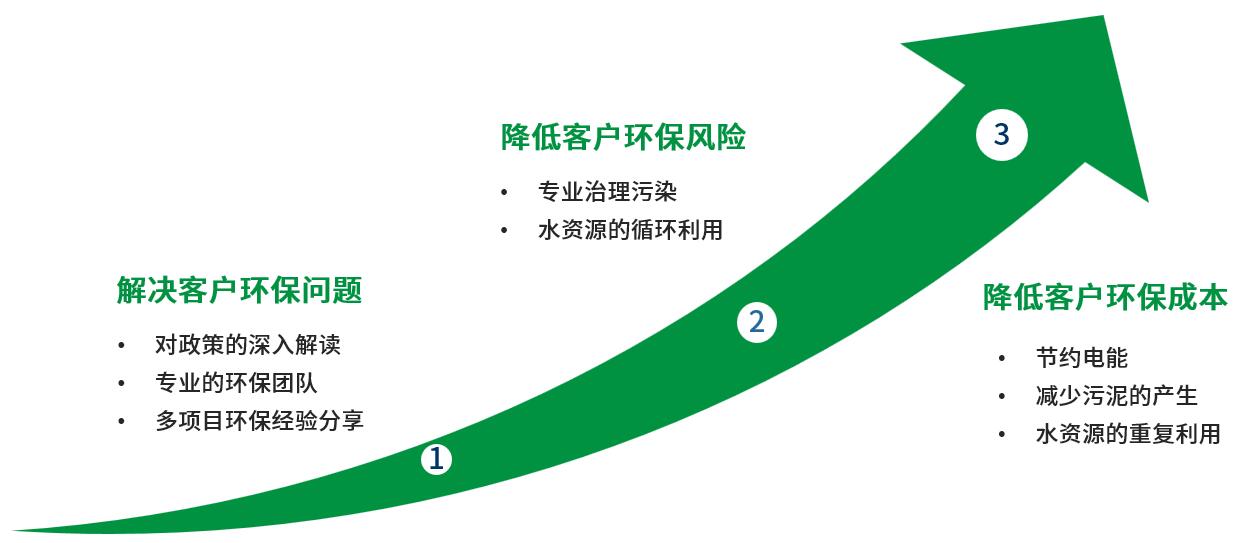 公司專注于各種高難度工業(yè)廢水處理、噴房循環(huán)水處理、冷卻循環(huán)水處理、純水制備、固廢及危廢減量化、廢水資源化利用等。提供現(xiàn)場運(yùn)營服務(wù)、專用化學(xué)品管理、環(huán)保技術(shù)咨詢等相關(guān)的一體化解決方案和服務(wù),旨在為客戶解決各項(xiàng)環(huán)保難題,并成為客戶忠實(shí)的戰(zhàn)略合作伙伴。